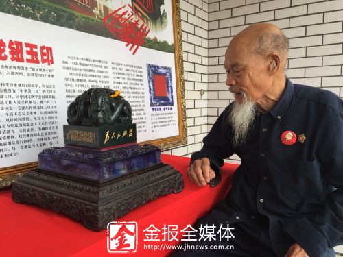 从那以后,这个玉印成了邵康乐老人的最爱。他找广告公司做了一块“传世龙钮玉印”的介绍版画,挂在顶楼门口的墙上,有空就将玉印拿出来欣赏。