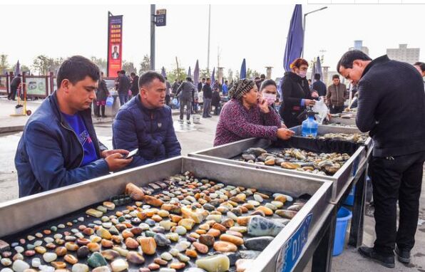 新疆和田之行,我来到当地的玉石市场感受和田玉的交易过程,以前只有王权王孙贵族才能配有的和田玉,如今成为社会大众随意交易的商品,露天玉石市场也如同“菜市场”一般,人头攒动,热闹非凡。