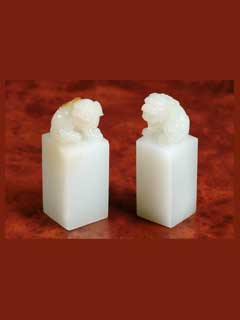 简介:羊脂玉对章.以上等山料为之,此对印系出同一块材料......