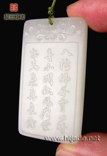 和田玉籽料羊脂白玉玉牌采桑女。以新疆和田玉籽料为材,由刘忠荣大师创作并亲自琢刻,(有落款)。作品正面无额首,四周沿起细边框线,边角圆钝,仕女伫立在石上,右手高举细长竿,抬头仰望,双目凝注桑树,挥打桑葚,左手高提竹篮,将飘落的桑葚纳入竹篮中。 刘忠荣在此,将垂落的衣袖,微突的小腹,因拍打桑葚而显出挺腰使力的曼妙之姿,表现的淋漓尽致。(转贴自观喜堂的<清和朗润>)。………………………………………………………………刘忠荣大师的介绍: “玉牌”是通过透视、线条、层次等手段,在平面上产生现实空间的玉雕艺术。这一难度较高的表现形式便是刘忠荣最擅长的了.刘忠荣最拿手的就是线条的运用和丰富的层次,不论是直线,弧线皆显出“挺”,“劲”之势,跟脚处亦不拖泥带水,干净利落。浮雕层次的掌控更是精彩,在一块小小的玉牌上,最高与最低之间微小的距离上,他可以做出比常人更多的层次,再加上对于人物,动物,花草,山水物体等结构体积的精准,使他的作品在立体感中,有一种温厚,顺畅,柔雅的光彩,这种感觉是十分重要的,坊间有很多玉牌,由于对层次,物象的掌控并不十分成熟,呈现出来的线条或是流光,常是杂乱而不柔畅,带有刺目的感觉.(转贴自观喜堂的《清和朗润》). 产品图一: 产品图二: