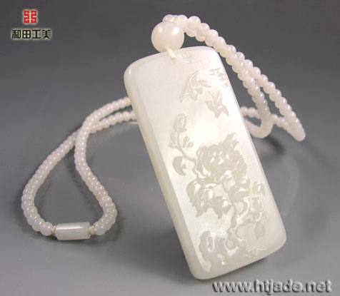 玉牌四周呈圆钝角。以浮雕的手法琢盛开的牡丹,枝繁叶茂,层层叠叠,舒展俊雅。花朵有的初绽,有的含苞。远处,祥云朵朵,两只鸟儿欢喜的舒展翅膀,在花枝上雀跃。画面动静相宜,相映成趣。背面阳刻“花开富贵”,突出主题。 和田玉籽料方牌。以上等大块和田玉籽料切牌琢之,玉质缜密细腻,脂感浑厚,色白纯净,品质极佳。作品通过深浅浮雕并用的手法,增强了图案的立体感,构图从容,工艺流畅,刀刻意随。触之如婴儿肌肤般温润爽滑,把玩欣赏的同时,更具收藏价值。 产品图一: 产品图二: