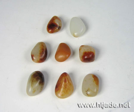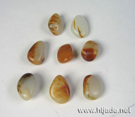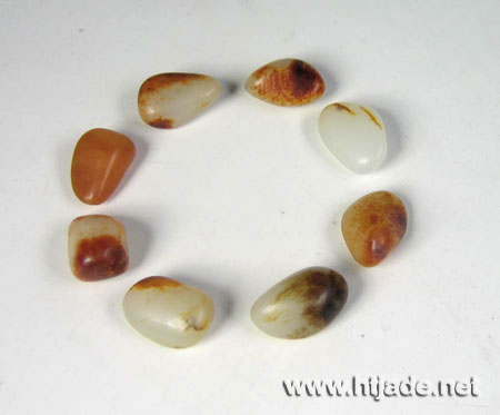 精心挑选8颗小籽,每颗都在长3厘米,宽1.3厘米,重4克左右的小籽.或洒金,或带红,或披褐色皮,精彩纷呈,玉质上等,完整性好,是难得一见的手链精品.