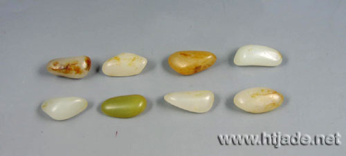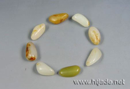和田玉籽料手链,8粒小籽各个精彩,品质高,完整性好,全部带皮,大小均匀,形状呈长条瓜子状,苗条瘦瘦,秀气得很可爱. 产品图一: 产品图二: 产品图三: