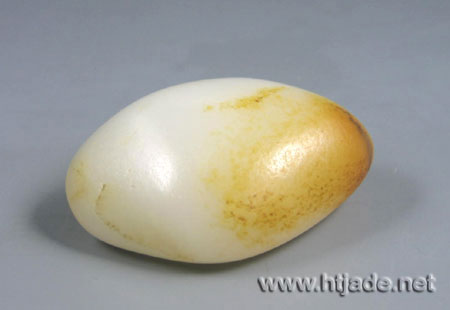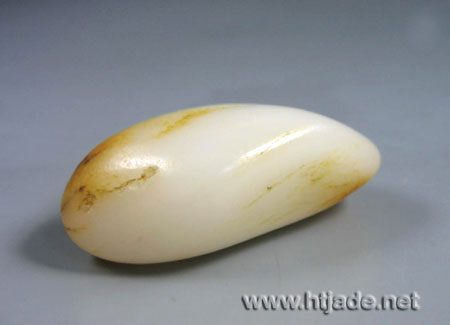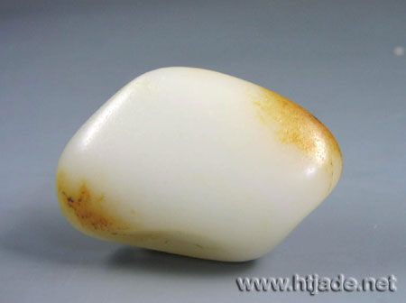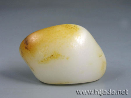 新疆和田玉籽料原石。料质属上等,细腻温润,白度极佳,边有金皮浓艳集中,料子完整性好,大致呈方块状,看上去就好象刚出炉的蛋糕,涂满厚厚的一层奶油,柔软鲜嫩的样子,忍不住想咬一口,料子浑身散发着柔和的凝脂光泽,更是叫人百看不厌。