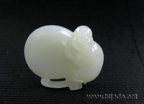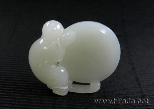 和田玉籽料白玉把件喜传捷报。以新疆和田玉籽料为材。玉质细腻纯净,白度中上,琢童子胖嘟嘟的身躯,圆滚滚的四肢,笑态盈盈,似传捷报而执槌敲鼓,庞大的锣鼓,令童子踮起脚尖,踩于鼓架之上,显得格外逗趣,另人莞而忘机。