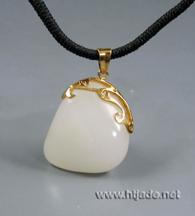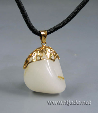 和田玉原料金玉组合.原料籽13克,缜密细腻,纯净无杂,白润如脂,完整如水滴,造物主该是怎样的灵光闪现,才造就如此尤物?哪怕是打眼,也不忍动一刀,,随即设计以18K包金作扣佩带,采撷大自然的灵气置于胸前,去感受美玉玄妙无华的境界,滋润纯真的心灵,倾听天籁之音吧。 产品图一: 产品图二: