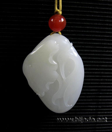 和田玉籽料挂件。材质温润而泽,白度上等,背面多绵,料子本身形不错,椭圆扁平,浮雕一片荷叶展开似伞,叶边翻卷,柔嫩无比,旁一只鹭鸶闲神定气,回头啄身上的水珠,构图于晶莹润泽的白玉之上,不禁会想到<爱莲说>的"出淤泥而不染,濯请莲而不妖,中通外直,不蔓不枝,香远益清......"莲的品性了.