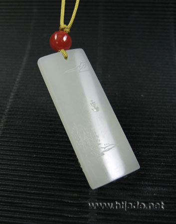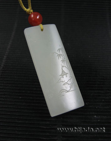 和田玉籽料方牌,材质缜密细腻,纯净无杂,脂感浓厚,白度中上,玉牌两面呈微拱,工艺师以刀代笔,绘画式构图,大量的留白,构成水天无尽,浩淼无边之境,视线转下,岸旁有竹林、小亭,拱桥,再转背面,沙洲小屿,孤舟独栖,画面于视线而流转,富有节奏,构成一幅“旷野天低树,江清月近人”的意境,给人以宁静澹泊之感,玉牌工艺精湛,浓浓的文人气质在不经意间流泻,实为佳作。 产品图一: 产品图二: