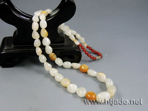 和田玉籽料项链。全部是小籽料磨成类似椭圆状,由中间......
