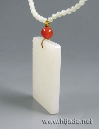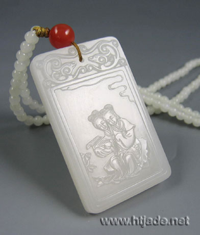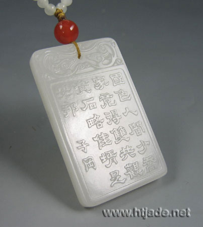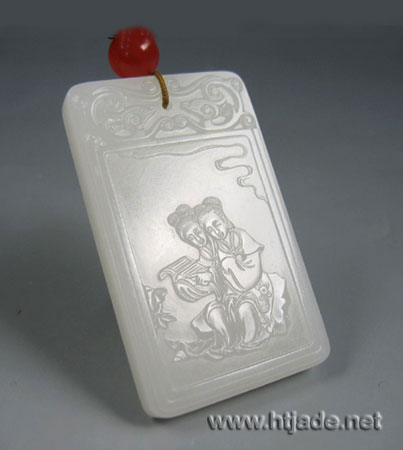 三国时乔公二女,大乔、二乔,皆美艳,贤德有才,吴国孙策攻下皖后,得乔公二女,孙策自纳大乔,周瑜纳小乔,堪称郎才女貌矣。此玉牌以此为题材,取上等和田玉籽料琢刻,玉质缜密细腻,洁白如雪,纯净无瑕,牌的两面额首均浮雕一对夔龙,下沿起边框,框内琢乔家姐妹坐于石上捧书共读,神情闲适优雅,背面阳刻“国色人间少,乔家竟得双。共观黄石略,佳壻足安邦”五言诗一首。玉牌构图颇具古画韵味,留白恰当,虚实相称,疏密得当,给人以灵空之感,线条流畅凝练,有飘逸之风,琢磨工细,根脚处干净利落,没有火气,尽显老味,诗画前后呼应,寓意深远,令人回味绵长,玉牌料工意俱佳,当属玉牌中的翘楚,是珍品.