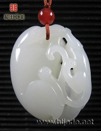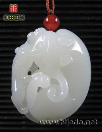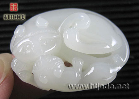 和田玉籽料白玉挂件同欢亲情。以新疆和田玉籽料为材,挂件以玉质取胜,白净细腻,光洁润泽。琢一大一小两只獾紧紧相依,其间以镂空手法碾琢出灵活的四肢与身躯的动态,在虚实相掩之间,双獾细密的情感自然流露出来。"獾"同谐音"欢",蕴涵"欢欢喜喜,满心欢喜,欢天喜地"是也,造型呈椭圆形,背面平整,非常适合佩带。是一件不错的佩饰。
