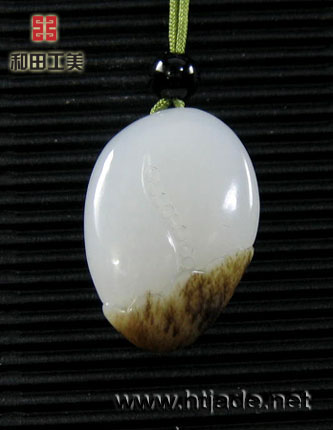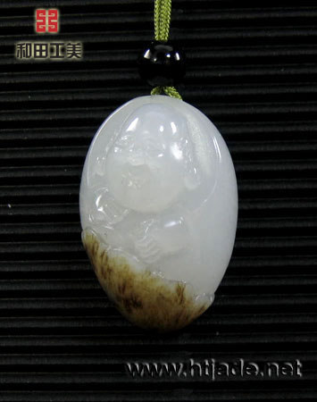 和田玉籽料白玉挂件笑佛。以新疆和田玉籽料为材,材质等级很高,玉质缜密细腻,晶莹润泽,白度极佳,琢笑佛开口而笑,状极欢乐,褐色的皮子巧雕荷叶,背面的衣褶处露出粒粒念珠,工艺处理干净利落,笑口常开,大肚能容,寓意也很不错,是料工艺熔一炉的小珍品.