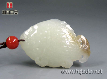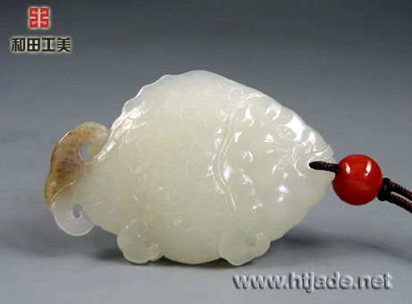和田玉籽料白玉挂件金玉满堂。以新疆和田玉籽料为材。材质缜密细腻,白度中上等,闪点蛋清色,很悦目,鱼儿自首至尾略呈S型,鱼的鳍、翅,尾细致明辨,周身鳞片无数,层次鲜明,一丝不苟,金鱼,寓意为金玉满堂,也寓为畅通无碍,又是佛教中吉祥八宝之一,象征着坚固、活泼,是逢凶化吉之祥物,玉佩造型古朴雅致,平整滑润,佩带有型。 产品图一: 产品图二: