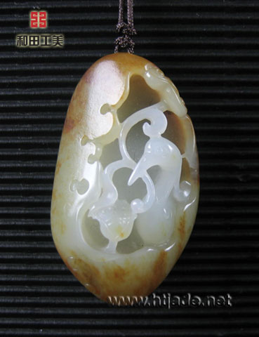 和田玉籽料白玉挂件一路连科。玉质温润细腻,皮色轻薄飘逸,原籽的形儿不错,工艺师巧用皮色及天然的玉形,布置成一片荷叶,欲展半合的样子,其间浅黄渐变及深褐色皮色的点缀,仿佛秋荷将枯,还送来徐徐余香,荷叶内裹润泽的白玉,琢一只鹭鸶在游弋,半身没入水中,口衔水草,荷花在旁绽开吐芳,很有情趣,意境很美。此件设计巧妙,工艺不俗,是很不错的挂件。