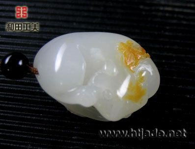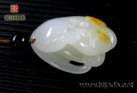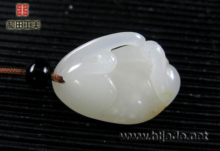 和田玉籽料白玉挂件猫蝶祝福。以新疆和田玉籽料为材。材质等级高,玉质晶莹润泽,细腻白净,立雕猫儿呈伏卧姿,转头回首,尾部内卷,一手挠腮,似在享受午后的阳光,懒散休闲,皮色巧雕一蝴蝶,落在其背部,猫蝶各自憩息,意态闲适,猫蝶通"髦耋",蕴涵长寿安康之意。是料工意均上等的挂件。