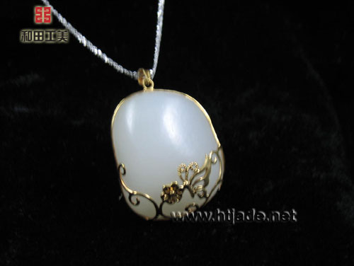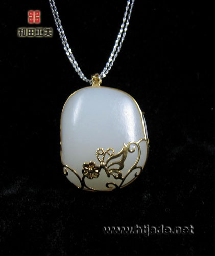 17g和田玉籽料原石,未经任何雕琢,属宝石级别,白如雪,润如脂,形如椭圆,仿佛是从花朵中滑落的一滴晨露,晶莹、润泽、纯净,映衬着18K金勾勒蝶恋花的舞姿,宛若细诉着花与蝶的往日情怀,如梦如幻,散发着浪漫的气息.....佩饰演绎出美玉如花般自然的灵气,夺目。