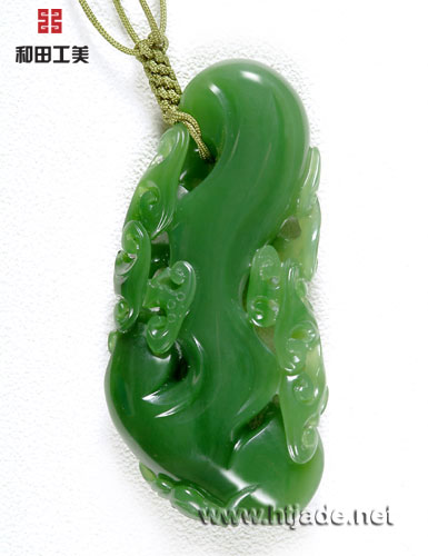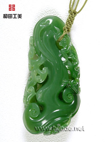 和田玉碧玉手把件,材质上等,色泽纯美碧绿,材质工艺均为上乘,在视觉上可以与上等翡翠媲美,是极品.