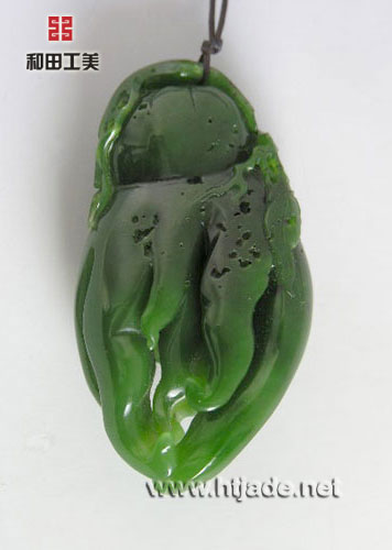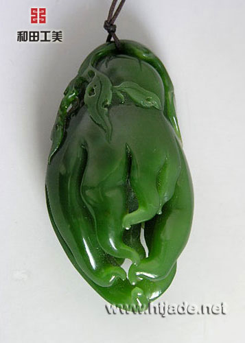和田玉碧玉挂件。色泽纯美,工艺细致,感官上可与翡翠媲美。