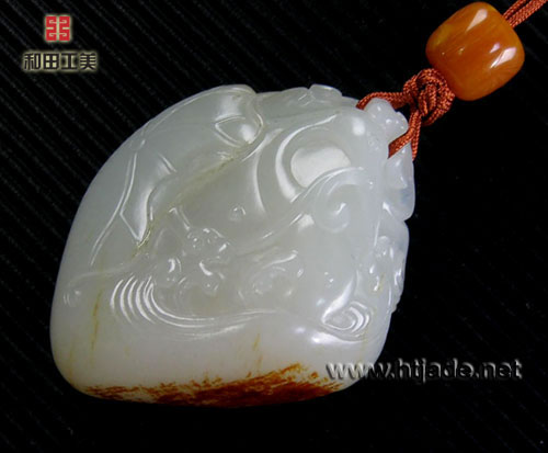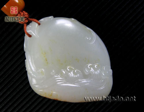 和田玉籽料白玉把件一路连科。以新疆和田玉籽料为材。玉质细腻温润,皮色呈干枣的红色,飘逸浓艳,此皮色非历经漫长岁月不能得也,工艺师随形琢一只鹭鸶,口衔水草,在水里游弋,其下浪花翻涌,荷叶似阳伞亦步亦趋随后为其撑凉,背面细琢的浪花,动感十分,同时也延伸了视觉空间,侧面完全保留皮色,如一抹醉眠红霞,自然野趣的味道,美不胜收。鹭与"路",荷即莲,莲与"连"谐音,一路连科,寓意也很吉祥,是一件很难得的把件。