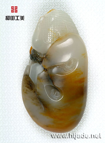 一只鹭鸶在河塘捕食,金色的羽冠,璀璨夺目,花,藕,叶浮在水面,满池花香,生机盎然,飘渺若云的皮色,显得分外雅致,背面酷似海边的岩石,饱含岁月,一幅漠漠的田野风光,令人赏心悦目而忘倦矣。此件为和田玉籽料手把件。以新疆和田玉籽料为材。玉质细腻白净,皮色夺目,通过遮脏去绺,在有限的空间,展现画有尽而意无限的至高艺术境界,是佳作。 产品图一: 产品图二: