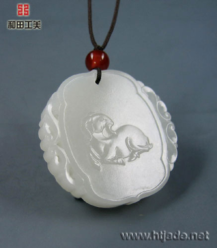 和田玉羊脂白玉生肖牌,以95于田山料碾琢,玉质缜密细腻,温润而泽,白度极佳,牌呈圆形,两边镂空以花纹为饰,琢羊呈伏卧姿,侧首挺胸,气宇轩昂,玉牌料质纯净,手感爽滑,是不错的生肖玉牌。 产品图一: 产品图二: