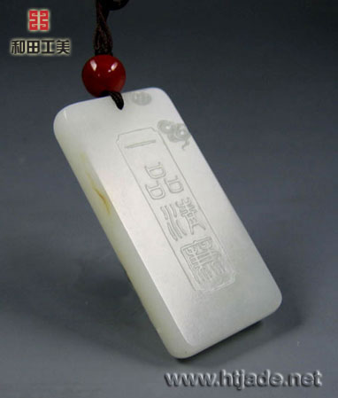 和田玉籽料方牌.材质温润细腻,白度好,玉牌呈圆钝角,高浮雕荷池一株莲,柔嫩旖旎,花儿绽放,叶子舒展,玉牌工艺细致,颇有动感,似与花香就近在咫尺。侧面皮色处隐约一条浅缝,无碍。 产品图一: 产品图二: