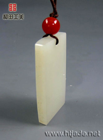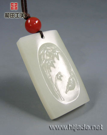 和田玉籽料白玉竹牌。以新疆和田玉籽料为材。玉牌因为形状规矩和两面平整,故对材料的要求很高,这也往往能给设计者更多的创作空间,此玉牌以和田玉籽料琢之,材质缜密坚实,细腻程度很好,白度中等,略闪灰些,开椭圆窗,精雕“祝福”图,竹子几株,枝劲叶利,随风若动,蝙蝠振翅而至,玉牌图美如画,背面光素,侧面满皮,具有古朴高雅含蓄的气质。 产品图一: 产品图二: 产品图三: