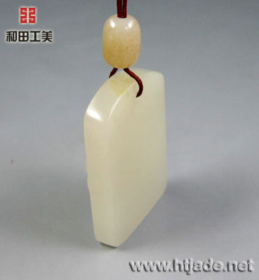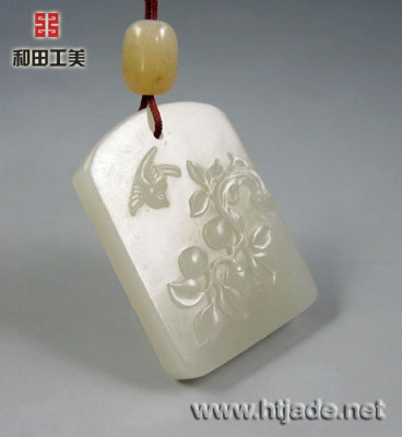 和田玉籽料白玉牌福寿安康。以新疆和田玉籽料为材,材质温润细腻,白度一般,偏黄,玉牌上方浮雕喜鹊煽动着翅膀飞来,下方是结满了果实的桃枝,构图简洁,动静相映,大量留白,令观者在心领神会玉牌寓意的同时,感受美玉柔美的光泽,老气,耐看。 产品图一: 产品图二: 产品图三: