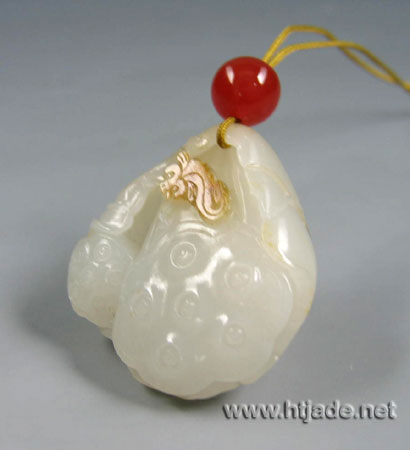 和田玉籽料白玉挂件莲年有余。以新疆和田玉籽料为材。白度好,细腻温润,洒金皮,局部略有微花,立雕一片荷叶包裹着大小两只饱满的莲蓬,以金皮巧雕一条鲶鱼,于其间甩尾游弋,充满了动感和灵气,背面叶子有杂质的部分,巧处理成被虫蚕食的缺口,自然而富有情趣,连连有余的吉祥含义,令人颇有好感,玉件可腰挂把玩,也可作挂件佩带,背面略有杂质和微花,不影响整体,无碍。 产品图一: 产品图二: 产品图三: