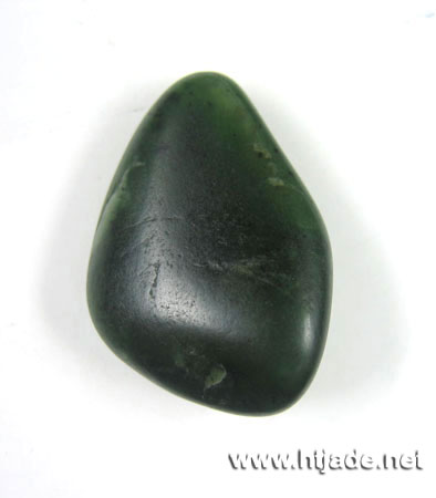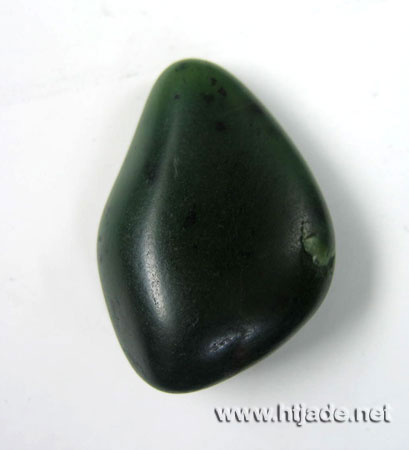 新疆和田玉碧玉籽料原石,质地温润,色泽深沉碧绿,带墨点如图,完整性好。直接打眼可佩带。 产品图一: 产品图二: