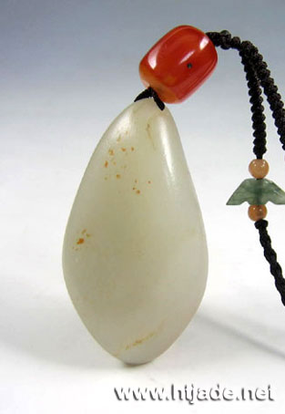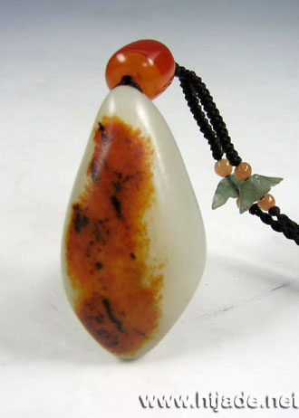 新疆和田玉籽料原石。玉质缜密细腻,白度中等偏上,略闪灰,正面皮色呈橘红,背面洒点金,颇有红透半边天,气势如虹的姿势,背面底部皮色处有一条浅缝,无碍。(图片与实物很接近) 产品图一: 产品图二: