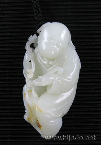 和田玉籽料白玉把件童子报捷。以新疆和田玉籽料为材。玉质细腻温润。仿明清的工艺和题材。是件回味有余的珍品。