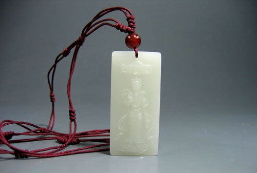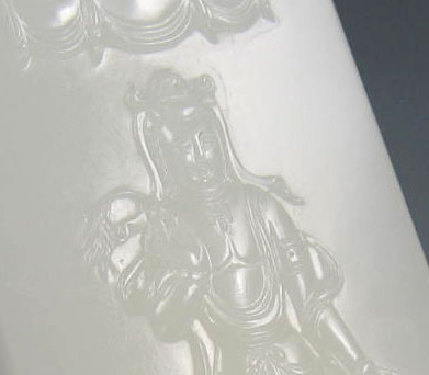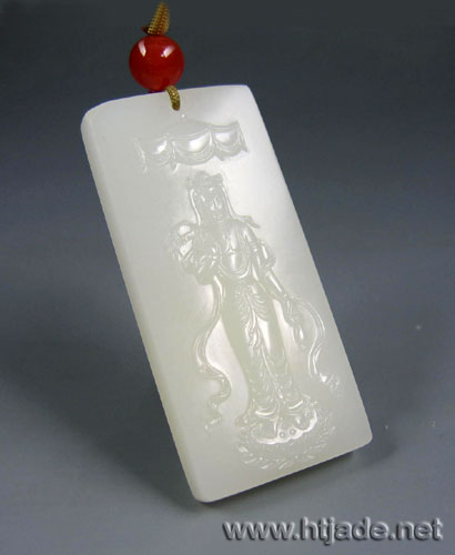 和田玉籽料玉牌,材质缜密细腻,温厚凝重,白度好,玉牌构图新颖,灵感来自莫高窟的千手千眼观音造型,浮雕观音立于莲花台上,上有华盖,头戴宝冠,身披璎珞,手贯环钏,腰系长裙,衣曳飘逸,长带飞舞,服饰华美庄重,观音面容丰圆,右手捻杨柳枝,左手持净水瓶,普度芸芸众生矣,玉牌工艺精湛,构图唯美,是庇佑平安兼收藏的精品。 产品图一、 产品图二、 产品图三、 产品图四、 产品图五、