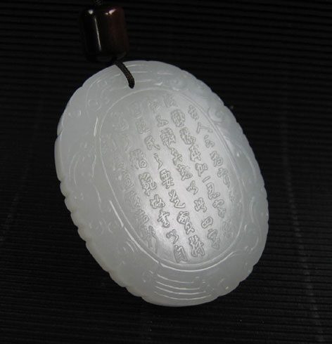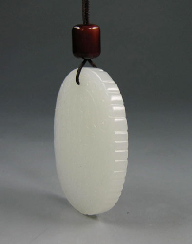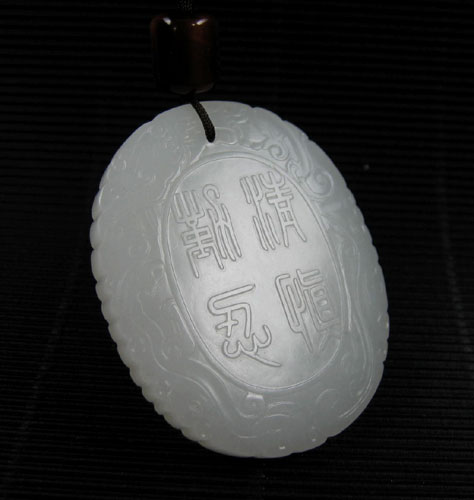 此块诗文牌以上等山料琢之,材质温润细腻,白度佳,此牌为完全模仿明清的“清勤慎忍”诗文牌而制,一面浅浮雕“清勤慎忍”四字,另一面刻铭文:“古人云为官能清勤慎再加一忍字何事不辨矣,愚以此四字固治民之要,道实持躬之楷范故事以自省.”落款“鸣谦蒋益题”,周边以龙纹为饰,玉牌雅致清新,启人心智。