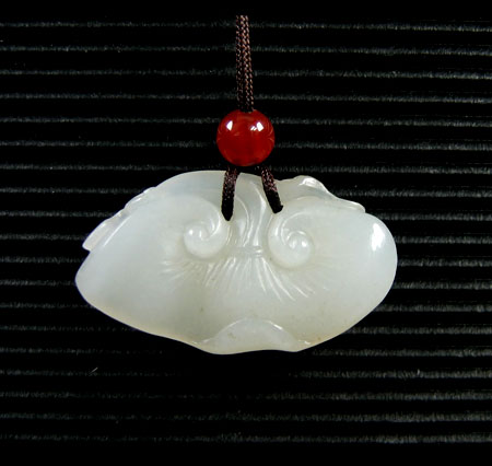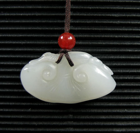 和田玉籽料小挂件。材质缜密细腻,温润有泽,白度中等,一枝灵芝如意头,舒张柔嫩,如一朵祥云,带来了好的兆头。玉件小巧精致,女士佩带漂亮。