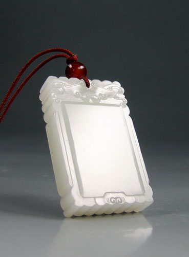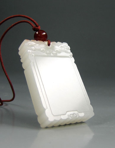 和田玉籽料白玉挂件素牌。以新疆和田玉籽料为材。玉质缜密细腻,油润脂感强,白度上等,色均一,顶部留金皮。牌型结构工整大方,牌额采用浅浮雕,额首琢“福”纹,下设二细边框,框内素面无字,周边纹饰古朴流畅,牌面平整,手感极佳。蕴涵平安无事,祈福安康之意。作品简约而精美.适合佩戴和收藏。 产品图一: 产品图二: