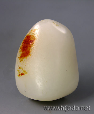 和田玉籽料手把件,玉质缜密细腻,柔和如脂,白度佳。原籽不破形,正面开窗琢兰花,叶颀长,摇曳多姿,引来彩蝶自在飞舞,似闻香而来,是追逐花香偶遇兰花君子吧!玉件背面平整爽滑,适合把玩。