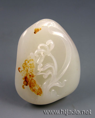 和田玉籽料手把件,玉质缜密细腻,柔和如脂,白度佳。原籽不破形,正面开窗琢兰花,叶颀长,摇曳多姿,引来彩蝶自在飞舞,似闻香而来,是追逐花香偶遇兰花君子吧!玉件背面平整爽滑,适合把玩。 产品图一: 产品图二: