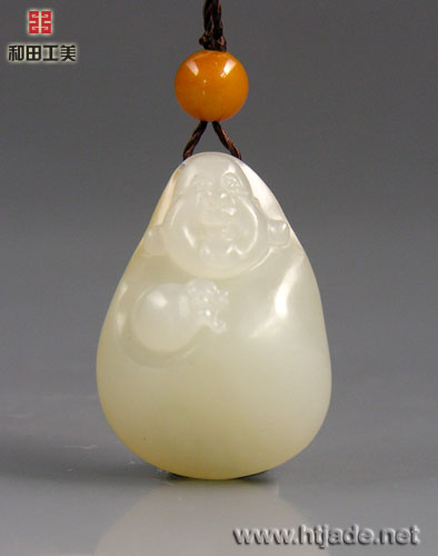 和田玉籽料白玉挂件笑佛,以新疆和田玉籽料为材。玉质细腻,温润而泽,色白悦目,背面洒金皮。随形琢笑佛,圆额凸顶,福耳垂肩,开口而笑,状极欢乐。人生知足常乐、笑口常开足矣!玉件呈水滴形,适合佩带。