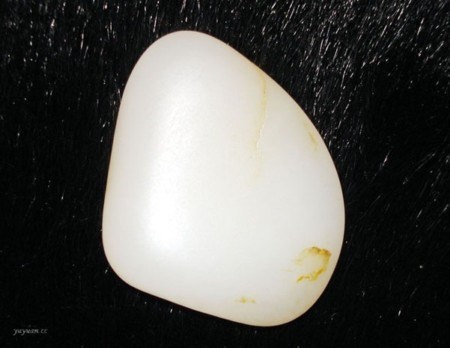 2、阿富汗白玉:由于阿富汗白玉玉质非常细腻均匀,光泽油润,肉眼看不到玉花,经常用来冒充上等白玉或羊脂玉,辨别的方法很简单,只要用手指甲使劲刮一下,如果能刮下一点白色的皮,就不是白玉。 另外还有一种蛇纹石玉,即岫玉,产于辽宁省岫岩县,岫玉产量较大,硬度低,易断裂,价格较低。一般透明度比较高,以湖水绿色为主,主要用来冒充和田青白玉、青玉,黄色岫玉也比较常见,主要是冒充黄玉,岫玉也有白色的,而且玉中有棉絮。现在新疆也发现了大量蛇纹石玉。由于岫玉硬度小于5,故划不动玻璃。