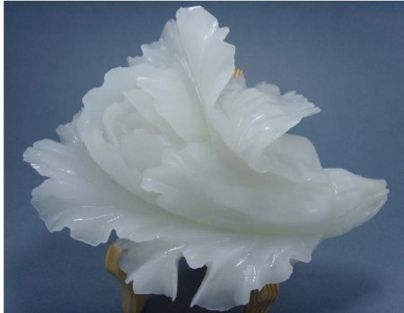 二是方解石类玉石,外观近似白玉,例如市场上所谓的“阿富汗白玉”就是由方解石形成的玉石,其实就是一种大理石,只不过色很白,半透明,常雕成白菜,寓意象征“百财”。这种玉石硬度很低,普通小刀即能刻动,是不难识别的。