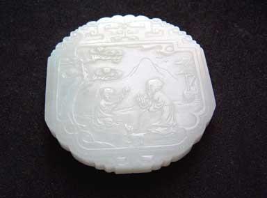 (什么叫油脂光泽请你到趟菜场去看看猪肉的膘,那光泽就是)而青海料就是有透的感觉没有那种浑厚凝脂般的感觉。所以大家利用一看、二摸、三看光泽,即使你是菜鸟也可掌握一二了。哦,对了还有一种新疆产的"马蹄筋"的DD,很白哦,肉也细其也是一种石英类的玉石,硬度有7。小刀划不动,但有个弱点没有油性,很干。好了,基本能够识别和田玉了,那下一步,我们应该看看和田玉的档次了。历朝历代以白玉为佳,所以近年来白的俄料、青海料充斥市场。但是和田玉在整个矿区白玉的所占比例是非常小的,所以价格贵,尤其是羊脂玉是特别的珍贵。除羊脂玉和田白玉中还分雪花白、鱼肚白、梨花白、象牙白等13种。从材料上讲又以子玉最贵,和田子玉有艳丽的皮色为许多买家、藏家所喜爱有秋梨、芦花、枣红、黑皮等珍贵的皮色品种,工匠利用皮色做俏雕自然成趣 。