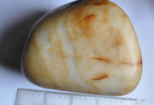 白玉籽料,但是这材料上全是水线,什么东西都做不成,要是切开就什么钱也没了,能出手赶紧出手吧,别留着了!!
