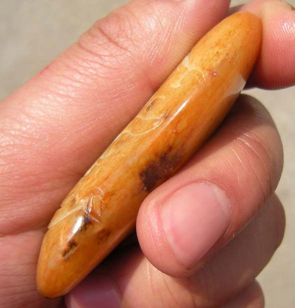 我看不像和田玉。好像是个被药水泡过的石头。见笑了!!