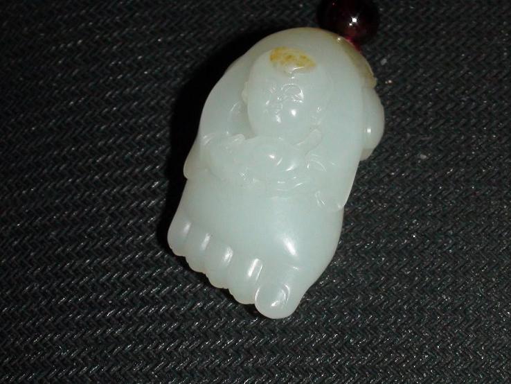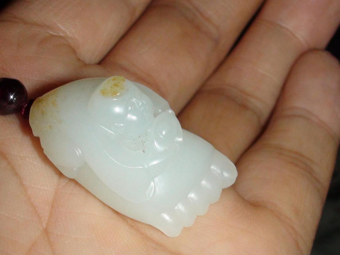 看图片东西不错,玉性挺好;一般多是童子手持元宝的题材(童子在古时称为贵人,寓意为童子献宝或纳福之意),或是足上雕琢一蜘蛛(寓意为知足常乐),雕在一起的到是见的少,玉都有辟邪保平安之意,东西喜欢就好~~~
