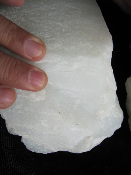 95于田料是大部达羊脂级的罕见山料,但是爆破作业造成料块大的不多,且料块有裂纹,甚为可惜.历经十年使用,此批料已不多见。