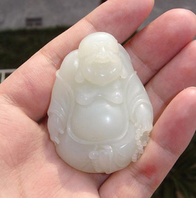 ,油性,脂粉都很好,上海细工,弥勒憨态可掬,肩膀有一蝙蝠,寓意蝠引福来,口彩很好,让人爱不释手!