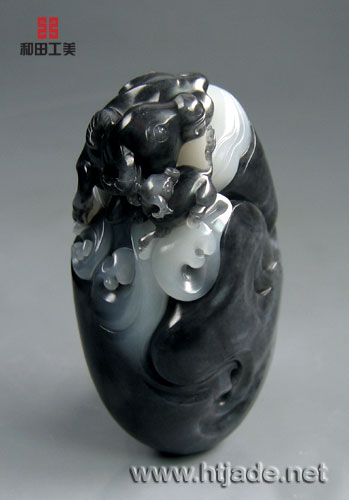 好多人一谈到和田玉籽料的墨玉或者青花,感觉好像都是有很明显的青花特征,墨色或呈现条状,或呈现点状,或呈现山水状,或者呈现聚墨黑色等等。